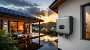 This is a smart hybrid solar inverter integrating grid-tie and off-grid energy storage, featuring IP66 protection, a wide MPPT voltage range (120–500V), intelligent BMS battery management, multiple communication and WiFi monitoring functions, delivering safe, stable, low-noise and high-efficiency power for homes, offices, and power stations.